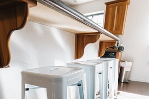 Kitchen bar seating with four stools—perfect for morning coffee, casual meals, or gathering together after a day of hiking, skiing, or lake fun in Pinetop.