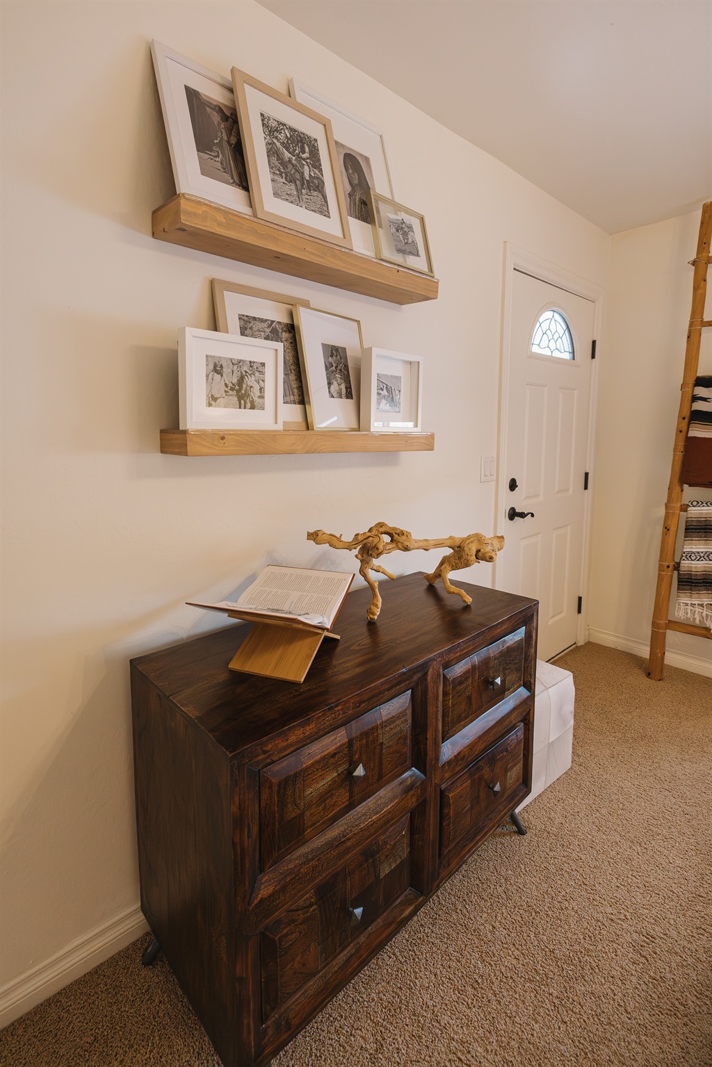 Warm, welcoming entry with curated décor and mountain charm. Attiwood Ridge offers a boutique Pinetop condo experience designed for couples and families seeking comfort, style, and a peaceful getaway.