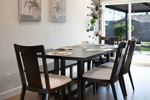 Spacious dining area with seating for six, perfect for shared meals, game nights, and gathering together